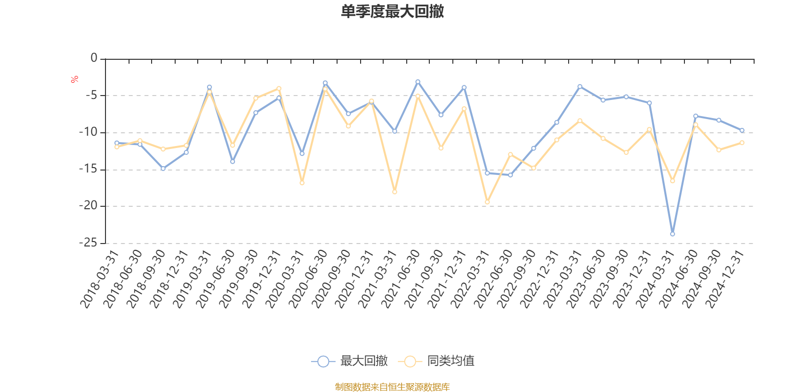 截至1月22日,基金近三年最大回撤为34.49%,同类可比基金排名207/257。单季度最大回撤出现在2024年一季度,为23.74%。