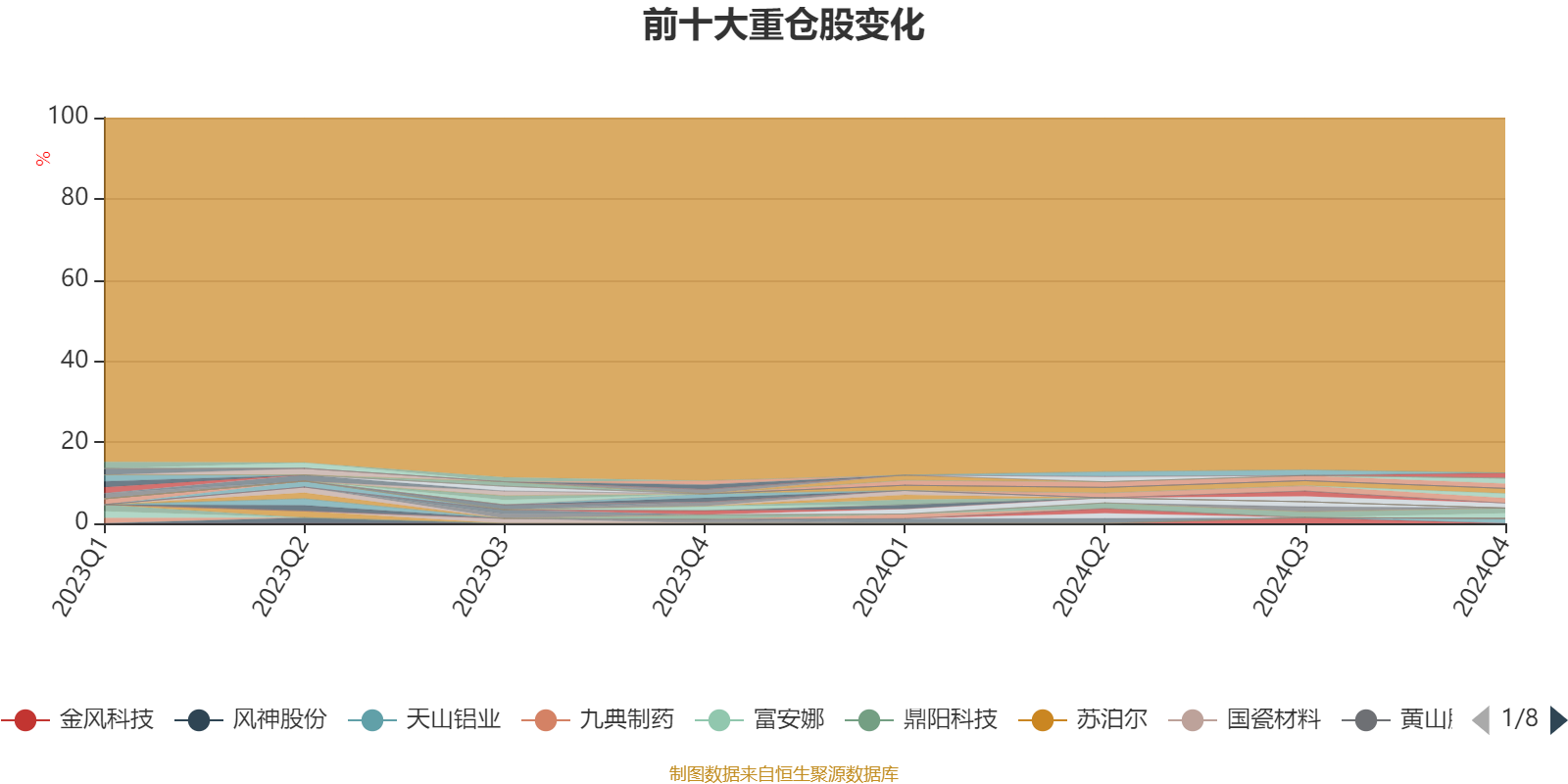 截至2024年四季度末,基金十大重仓股分别是中航高科、燕京啤酒、国元证券、宏发股份、顺络电子、光威复材、天山铝业、华安证券、电投能源、海亮股份。